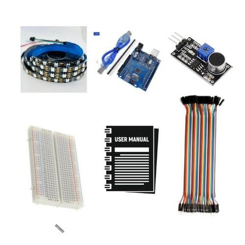 Built for creativity and performance, the system uses a sound sensor or microphone module to detect audio signals and instantly trigger color changes, brightness variations, and flowing animations. Each RGB LED can be individually controlled, allowing smooth color transitions, beat-based effects, and eye-catching waterfall lighting patterns.