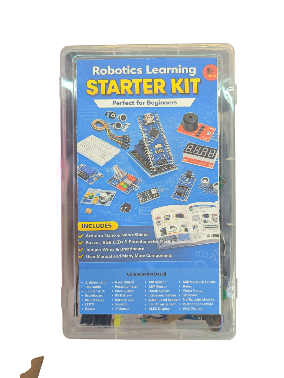 The Arduino Robotics Learning Starter Kit is a complete educational electronics kit designed to help beginners learn Arduino programming, sensors, robotics, and embedded systems through practical projects.